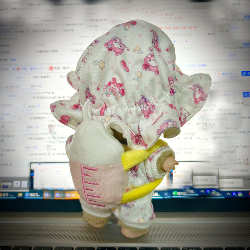[Clothes only] 17cm blind box Macaron Labubu baby pajamas feeding bottle Labubu pendant for cute