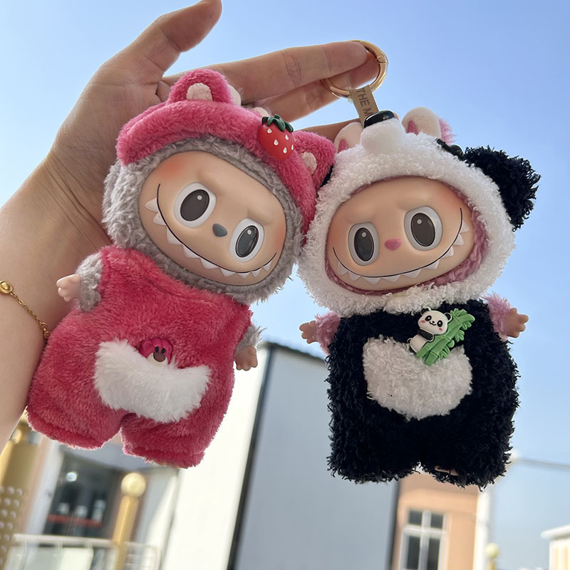 [Clothes only] 17cm pendant, rabub clothes, bamboo bear two-piece set, keychain labubu doll clothes, cute.