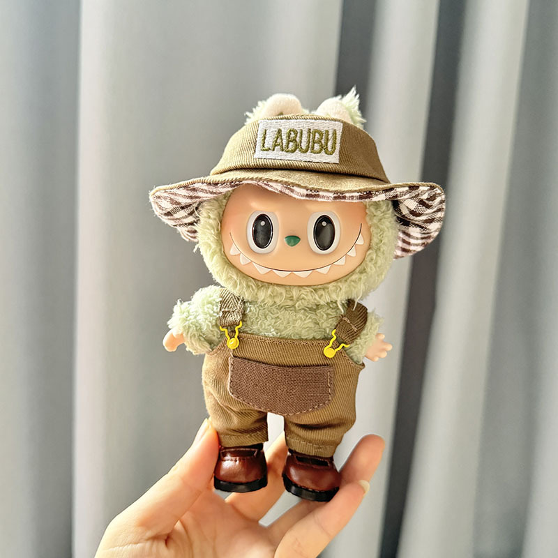 [Clothes only] One, two and three generations Labubu clothes pendant Labubu sitting party baby clothes green fisherman overalls